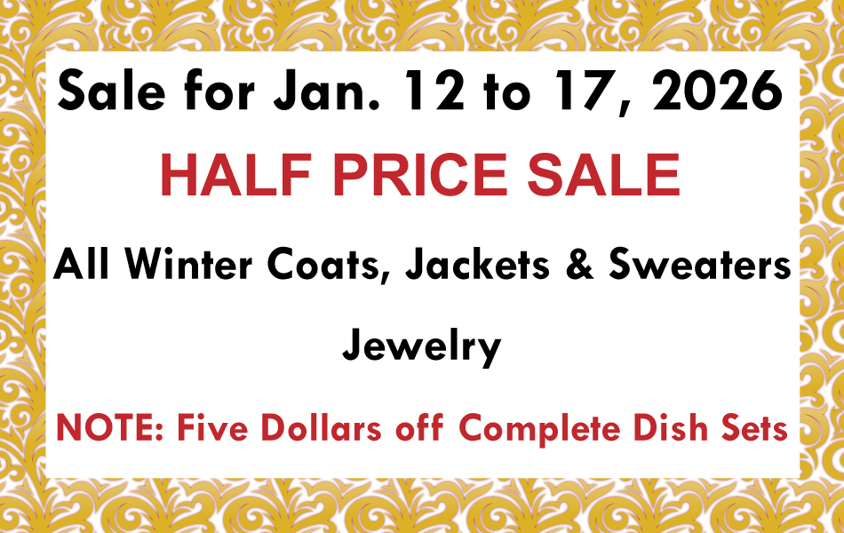 Sales for January 12 to 17, 2026 JANUARY SALE HALF PRICE SALES All Winter Coats, Jackets & Sweaters [...]