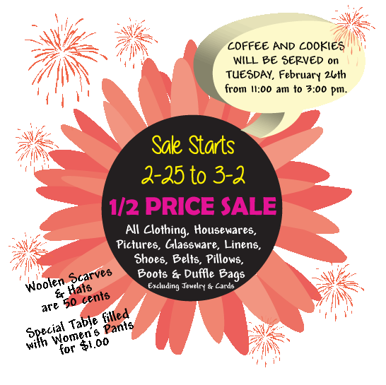 Our Special 1/2 Price Off Sale begins Monday, February 11 until Saturday, February 16. Check out what is ON SALE: [...]