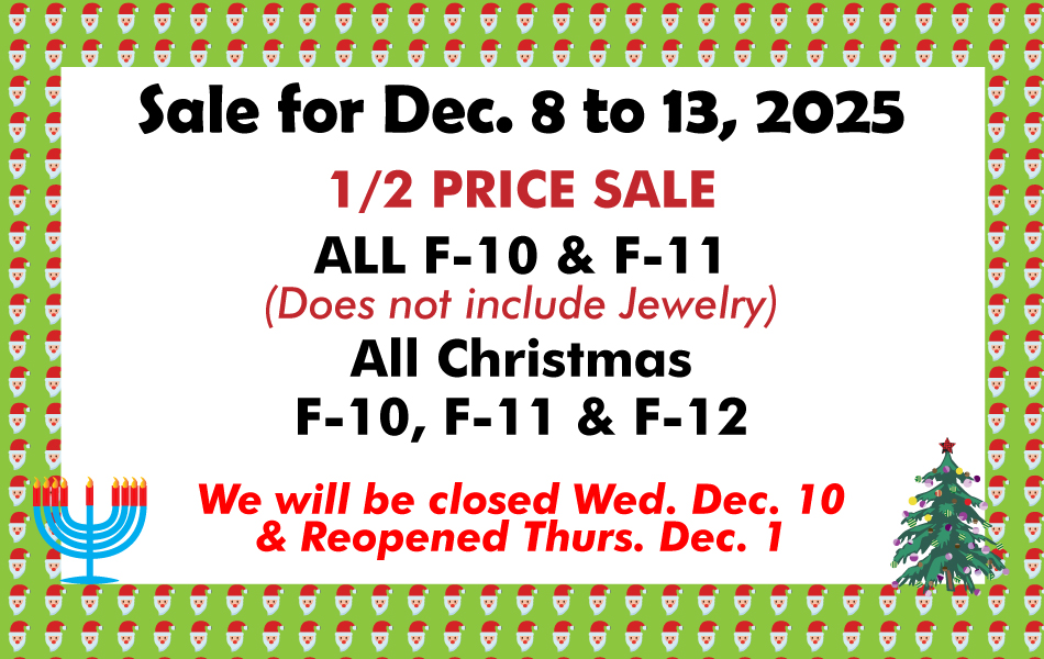 Sales for December 1 to 6, 2025 WE will be closed Dec. 5th and reopen Dec.6th ½ Price [...]